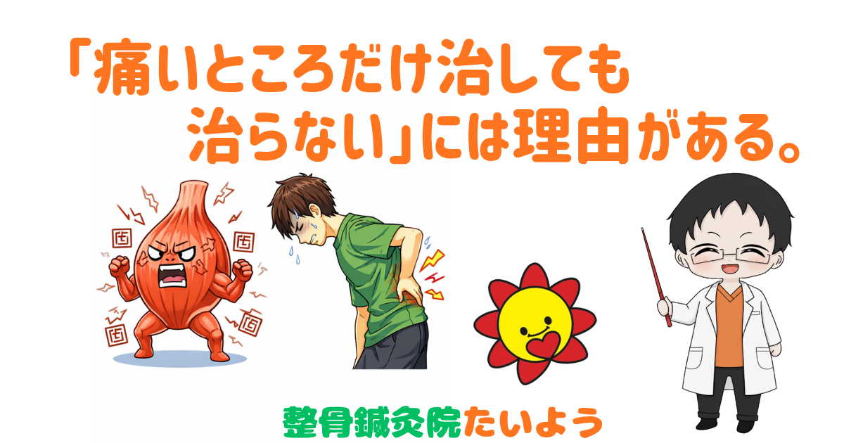 腰が痛い、肩がこる、膝が痛い……。でも、なぜ同じ場所が繰り返し痛くなるのか、考えたことはありますか?それは、「痛いところ」が本当の原因ではないからかもしれません。
