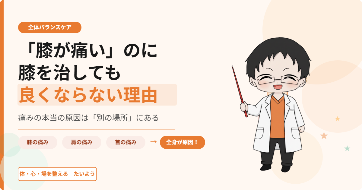 人の体はすべてつながっています。「なかなか治らない」と感じているなら、もしかしたらまだ「本当の原因の部位」に手が届いていないだけかもしれません。